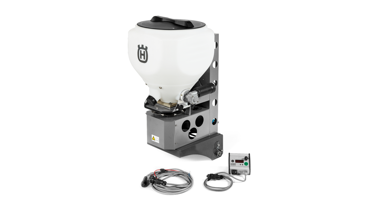 En högkvalitativ spridare för professionell användning. Kan används för att sprida salt, sand, grus, gödning eller frön i storlek upp till 6 mm. Levereras komplett med kablar, kontrollplanel och fästanordning. Alla funktioner hanteras på kontrollpanelen från förarsätet. Steglöst justerbar hastighet för rotationsplattan och ett lock som kan öppnas och stängas ifrån förarstolen.