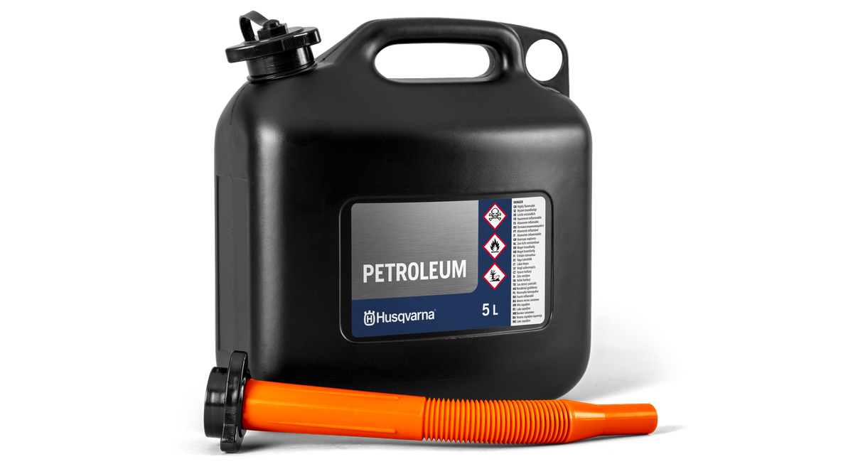 Slitstark 5 liters Husqvarna bränsledunk med integrerat handtag som gör den lätt att bära. Levereras med flexibel bränslepip för problemfri påfyllning med minskad risk för oavsiktligt spill.