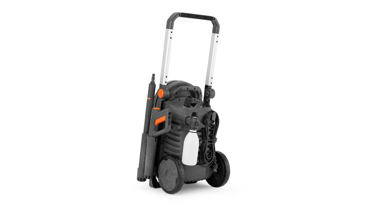 Husqvarna PW 370 är en förstklassig högtryckstvätt som är konstruerad för att rengöra alla utomhusytor och tack vare extra högt tryck kan den hantera de svårast nedsmutsade ytorna. Den extra långa, flexibla slangen erbjuder extra räckvidd och enkel användning, och är förstärkt med stål för hög slitstyrka. Den pålitliga, högpresterande induktionsmotorn och metallpumpen minimerar avbrott och levererar förstklassiga prestanda. Smarta sensorer och en digital display håller dig uppdaterad med felindikationer, produktinformation och detaljerade anvisningar. Det är enkelt och bekvämt att rengöra alla typer av ytor – från lätt sköljning med lågtrycksmunstycket till mer krävande uppgifter. Den nya 3-i-1-multifunktionslansen ger dig möjlighet att växla snabbt mellan olika uppgifter, eftersom munstycket kan bytas med ett enda klick. Produkten är utformad med praktisk inbyggd förvaring så att du har allt du behöver inom räckhåll.PW 370 är kompatibel med flera olika tillbehör och när jobbet är klart kan du rulla upp slangen snabbt med slangvindan med styrning, vilket ger effektiv slangförvaring. Den är dessutom utrustad med stora mönstrade däck som ger utmärkt grepp i krävande terräng och ett vikbart aluminiumhandtag, vilket minskar kravet på förvaringsutrymme.