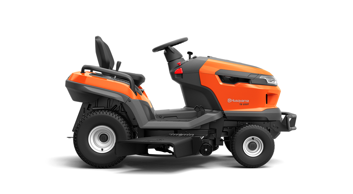 Trädgårdstraktorn Husqvarna TS 220T erbjuder komforthöjande funktioner och effektiv klippning för att göra underhållet av stora gräsmattor till en behaglig upplevelse. Lättåtkomliga reglage och spakar, snabbjusterande säte och sidohandtag bidrar till hög komfort och god ergonomi. Det finns dessutom en farthållare som låter dig vila foten när du klipper stora områden utan hinder. Klippaggregatet på 108 cm erbjuder enastående klippresultat och med ett stort urval av klipphöjder kan justeringar göras enkelt för att passa olika behov och gräsförhållanden. Justeringen är fjäderassisterad för att minska påfrestningarna på användaren. Backdriftsystemet (ROS) aktiveras med startnyckeln för att ge snabb åtkomst till klippning bakåt och för att minimera risken för att funktionen används oavsiktligt. – – Motorfunktioner som automatisk choke, oljefilter och dubbla cylindrar, samt robust konstruktion med framaxlar av gjutjärn, garanterar pålitliga och hållbara prestanda. Det finns – dessutom ett kvistskydd som skyddar fronten om du råkar köra för nära hinder.