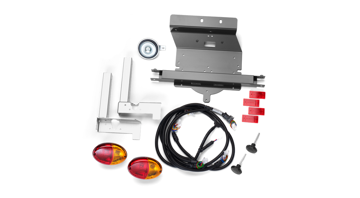 Bakre positionsljus och blinkers som monteras på ropsbåge. Justerbart läge för att möjliggöra ihopfällning av ropsbåge och manövrering i trånga utrymmen. Kräver kontrollbox(966 79 08-01).